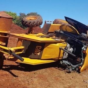 Um acidente de trabalho aconteceu em Palotina nesta terça-feira (30), em um loteamento nas proximidades do lago municipal, segundo informações, uma retroescavadeira estava realizando um trabalho de terraplanagem em um barranco, quando o motorista perdeu o controle da direção e tombou a máquina