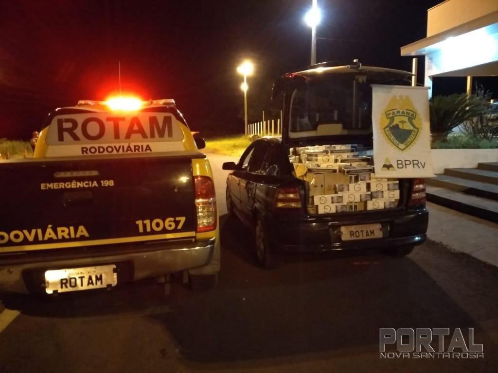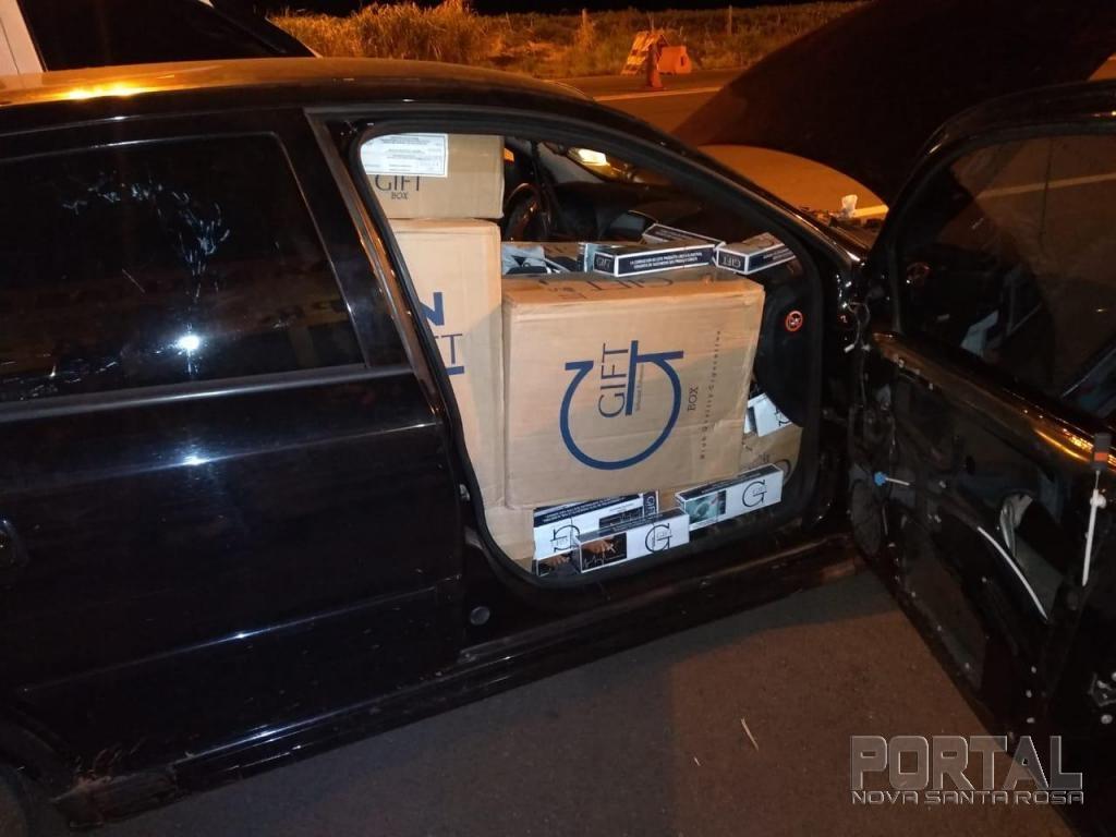 Durante a perseguição, os veículos entraram em uma estrada rural vindo a abandonar um dos veículos, no local foi constatado se tratar de um GM/ Astra de cor preta, o veículo estava completamente carregado aproximadamente 30 ( trinta )caixas de cigarros contrabandeados do Paraguai, após a confecção da documentação de praxe o veículo juntamente com o cigarro foram encaminhados a Receita Federal de Guaíra.