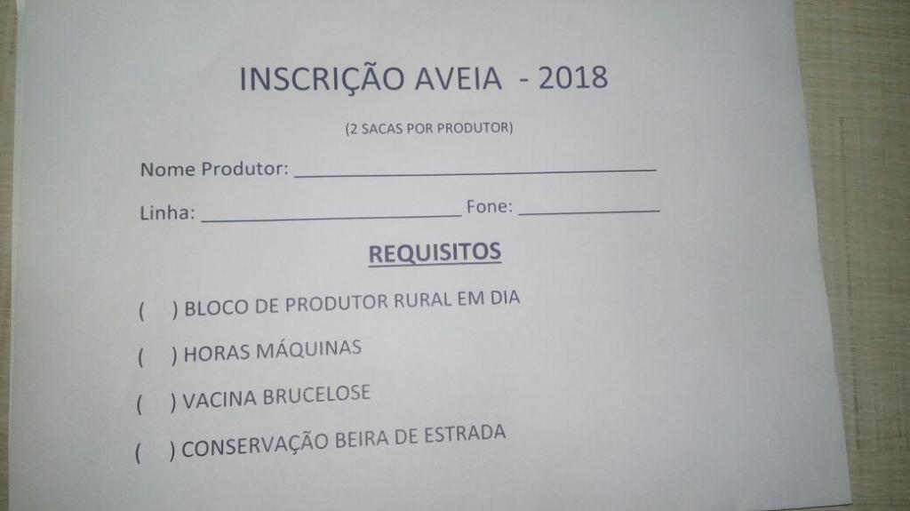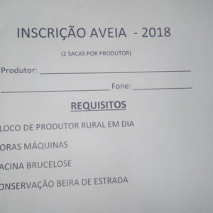As inscrições dos produtores de leite que desejam participar do programa de distribuição de sementes de aveia já estão sendo recebidas.