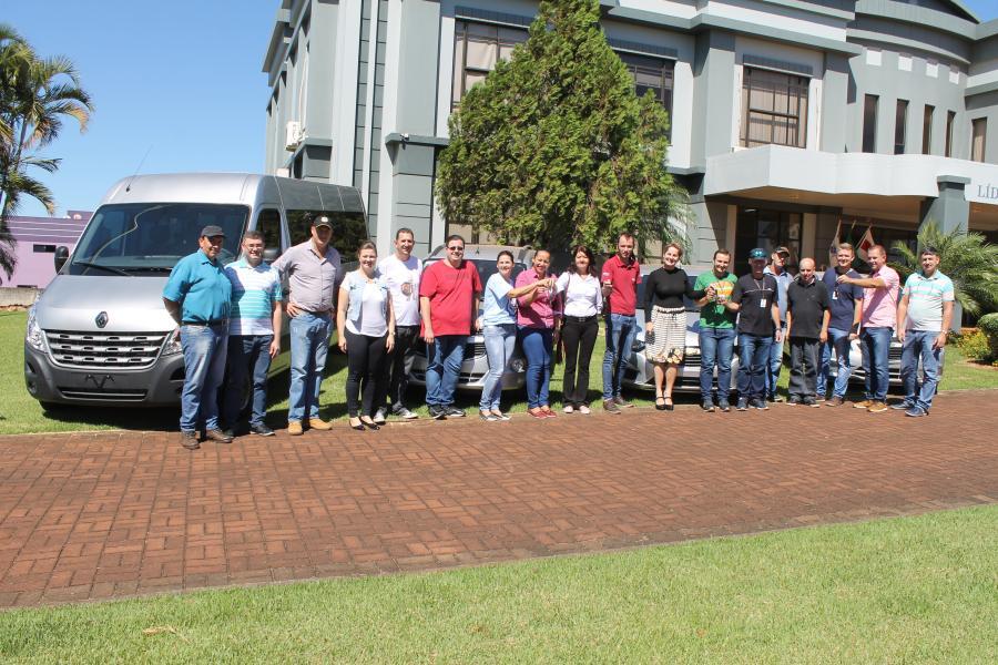 As chaves do Chevrolet Onix, Prisma, Spin e a Van Renault Master, com capacidade para 16 lugares, foram entregues pela Prefeita Cleci Loffi ao Vice-Prefeito e Secretário de Saúde Edson Schug e servidores da pasta.