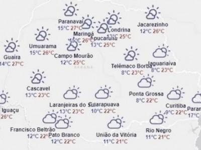 Em Cascavel, o dia amanhece abafado, com os termômetros margando 14º e ao decorrer da sexta-feira, a máxima pode chegas aos 23ºC.