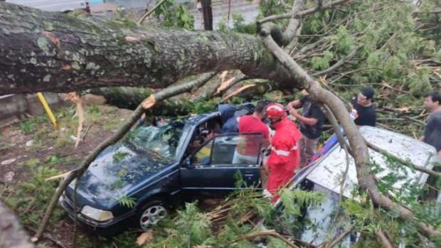 Em Foz do Iguaçu, casas foram destelhadas, postes e árvores derrubados com os fortes ventos.