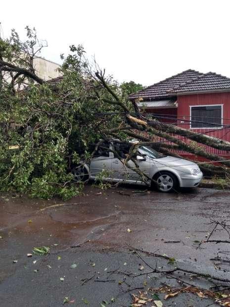 Na Rua Clevelândia, no Jardim Quebec, uma árvore caiu em cima de um veículo.