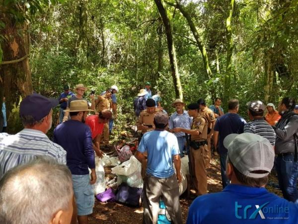 Ao chegar no local, os policiais visualizaram cerca de 45 veículos estacionados. Em diligências próximo a margem do Rio Piquiri, foram localizados aproximadamente 100 pessoas, entre homens e mulheres agricultores.