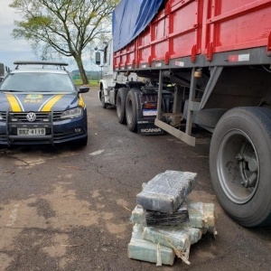 A Polícia Rodoviária Federal (PRF) apreendeu pelo menos duas toneladas de maconha na tarde desta terça (5) em Medianeira, na região oeste do Paraná. A droga estava em uma carreta, sob sacos de grãos de milho. A retirada e a pesagem do entorpecente ainda não foram concluídas.