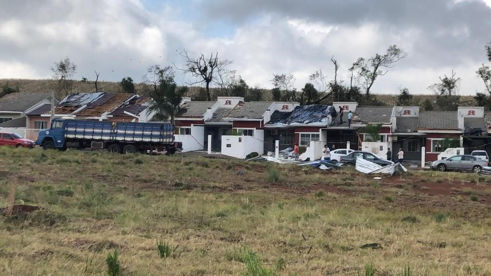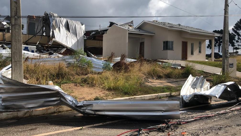 O tornado que atingiu a cidade de Campos Novos, no Oeste de Santa Catarina, na noite de sexta-feira (28) danificou 288 residências, mais de 20 indústrias e uma escola. Segundo o balanço da prefeitura, 1,7 mil foram afetadas pelo fenômeno que atingiu uma velocidade de 123 quilômetros por hora.