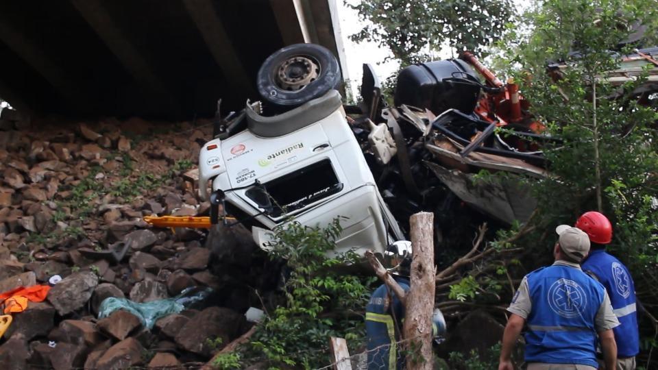 As equipes da Polícia Rodoviária Federal (PRF) e socorristas do Siate atenderam a ocorrência. O caminhão saiu da pista e caiu em ribanceira na ponte que passa sobre o Rio do Cobre