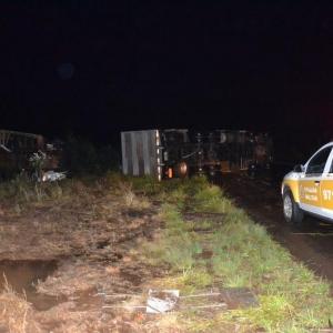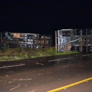 Os dois caminhões trafegavam sentido Rondinha/Sarandi quando perceberam o forte vento parando as margens da rodovia, quando foram tombados e arrastados pela força do vento, ambos possuem placas de Barão de Cotegipe/RS, e seguiam para carregar suínos, em ambos os veículos haviam o motorista e o passageiro que não se feriram, apenas um dos motoristas foi encaminhado para o Hospital Comunitário de Sarandi em estado de choque para receber atendimento.