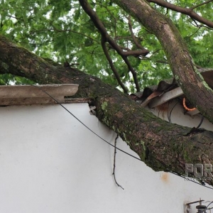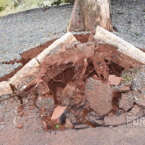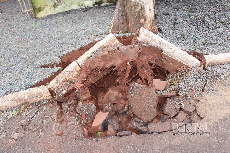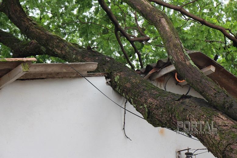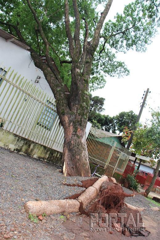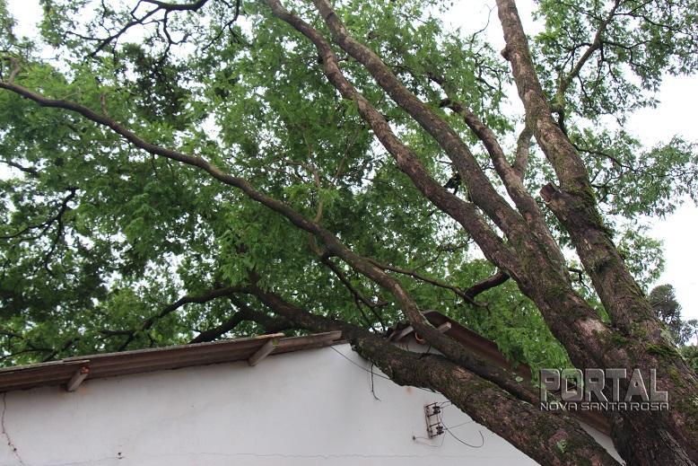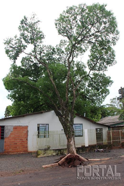 A casa segurou a árvore, pelo menos até o momento. Com a queda o telhado acabou danificado, segundo os vizinhos a Prefeitura Municipal foi acionada ainda pela manhã para a retirada da árvore que coloca em perigo os moradores e também a vizinhança, no início da tarde de hoje, momento em que a equipe do Portal Nova Santa Rosa estava no local fotografando, uma criança brincava embaixo da árvore com sua bicicleta.