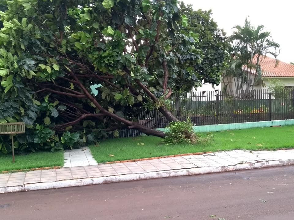 Aproximadamente 17h00 desta segunda feira (14), ventos fortes, acompanhados de chuva, derrubaram uma árvore sobre a cerca de uma casa localizada na rua Santa Rosa, à 50 metros da Rádio Tropical.