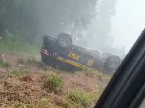 Conforme a PRF, a viatura teria aquaplanado e, sem contato com o solo, acabou capotando.