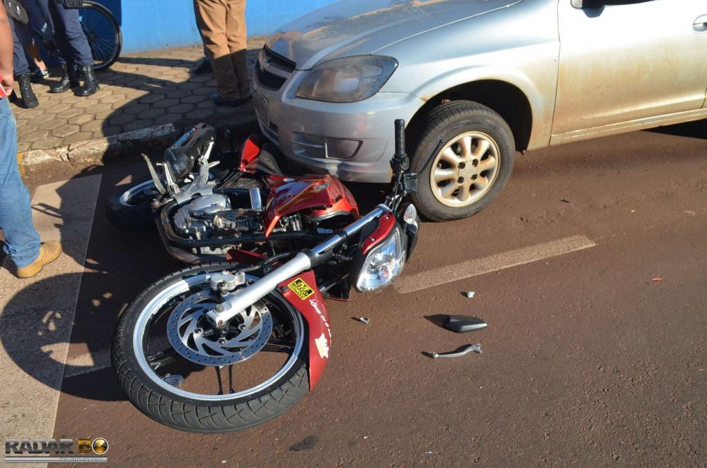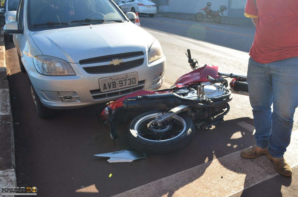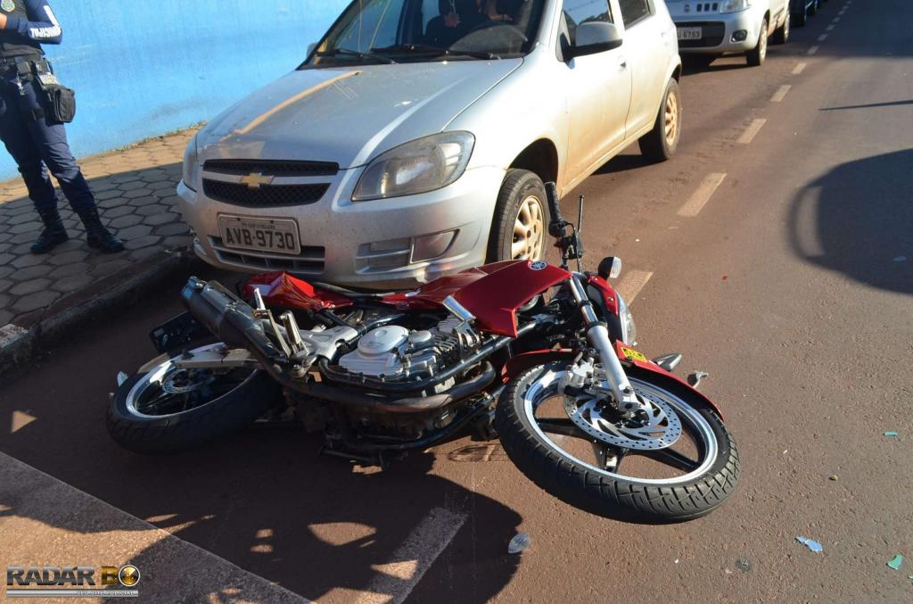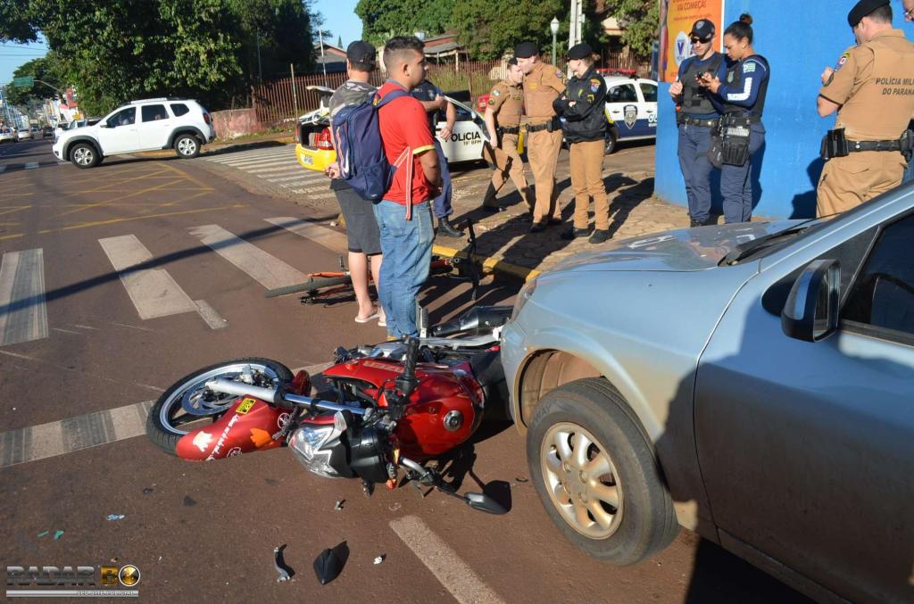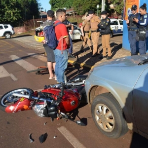 Um acidente foi registrado por volta das 08h40 desta manhã (18), no cruzamento da Rua São João com Rua Sete de Setembro, no centro de Toledo e envolveu a moto Yamaha Fazer, 250 cilindradas, placa AUL 2B59, Brasil, conduzida por Anderson Aiko Maeda de 20 anos, que tinha na garupa, Gabriele Morais de Oliveira de 19 anos e o Jeep, placas AOS 9996 de Toledo. O acidente aconteceu quando a moto trafegava pela Rua São João, no sentido centro ao bairro e o Jeep seguia pela Rua Sete de Setembro, quando o motorista do Jeep foi acessar a Rua São João, atingiu a moto. Em seguida o condutor da moto perdeu o controle e também atingiu o Chevrolet Celta, placas de Santa Helena, que estava estacionado. Os dois ocupantes da moto foram socorridos pelo Corpo de Bombeiros e levados a UPA com ferimentos moderados.
