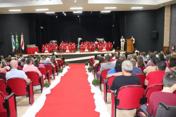 O Prefeito Laerton Weber, presente na cerimônia, parabenizou os formandos, destacando a importância desse momento na vida de cada aluno e ressaltando que eles representam o futuro do município.