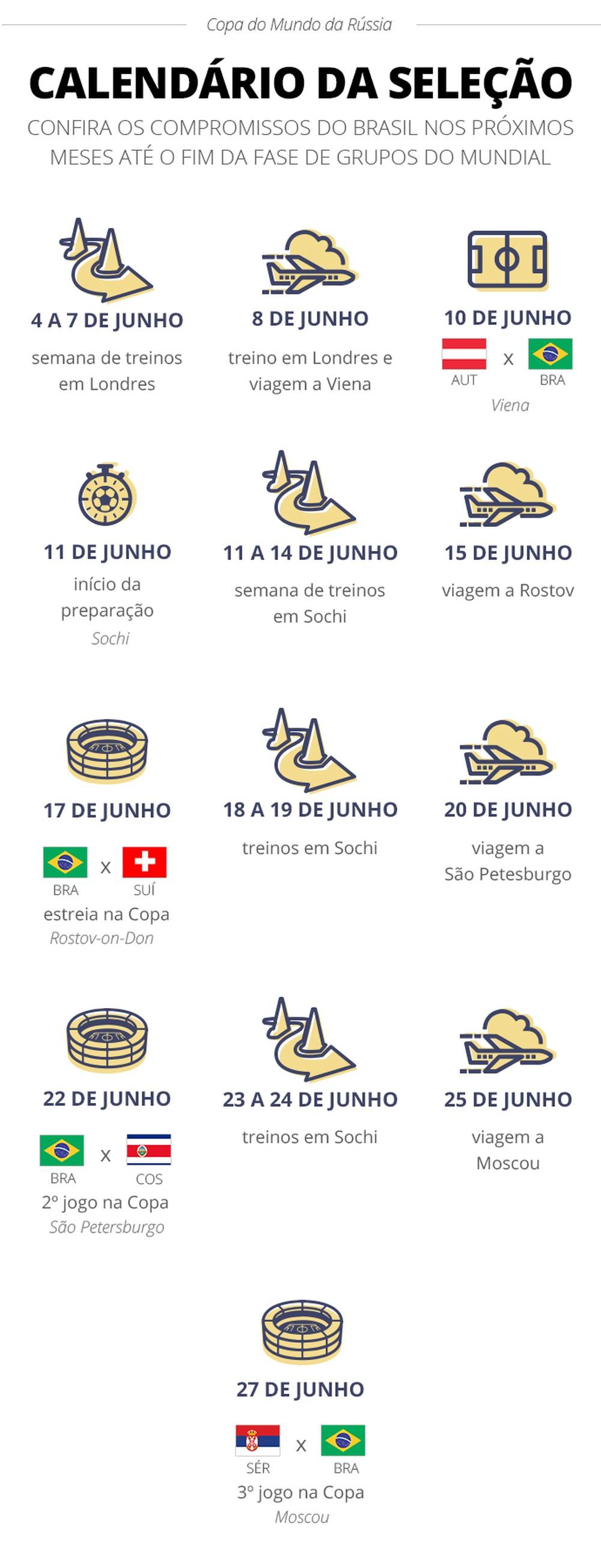 A Seleção brasileira já tem a foto oficial para a Copa do Mundo. Já com a numeração que vão utilizar no Mundial da Rússia, os 23 jogadores aparecem acompanhados dos 10 integrantes da comissão técnica. O registro foi feito após o treino desta sexta-feira, último dia da delegação em Londres após quase duas semanas de preparação na Inglaterra. O grupo deixa a concentração por volta das 11h (de Brasília) e segue em seguida para Viena, onde enfrentará a Áustria em amistoso no próximo domingo.
