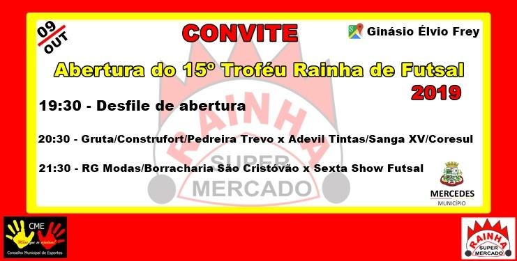 A Secretaria de Esporte, Lazer e Turismo de Mercedes inicia amanhã (09), às 19h30 no Ginásio Elvio Frey, a 15ª edição do Troféu Rainha de Futsal.
