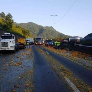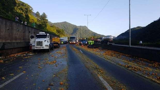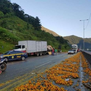 A pista sentido Litoral foi interditada por conta do acidente e parte da pista de rolamento, sentido sul, também chegou a ficar bloqueada, já que houve derramamento da carga de laranjas. A pista sentido a Curitiba já está liberada.