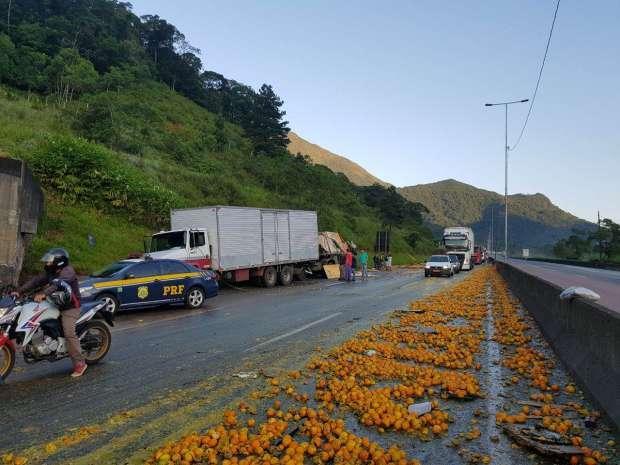 A carga de laranja ficou espalhada pela pista, mas trânsito já está liberado