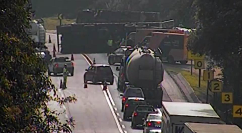 O acidente entre um caminhão e uma carreta deixou a BR-116 parcialmente interditada no km 148, da pista sentido Curitiba. A colisão aconteceu na manhã desta quinta-feira (12) no município de Mandirituba (Região Metropolitana de Curitiba), e ninguém ficou ferido.