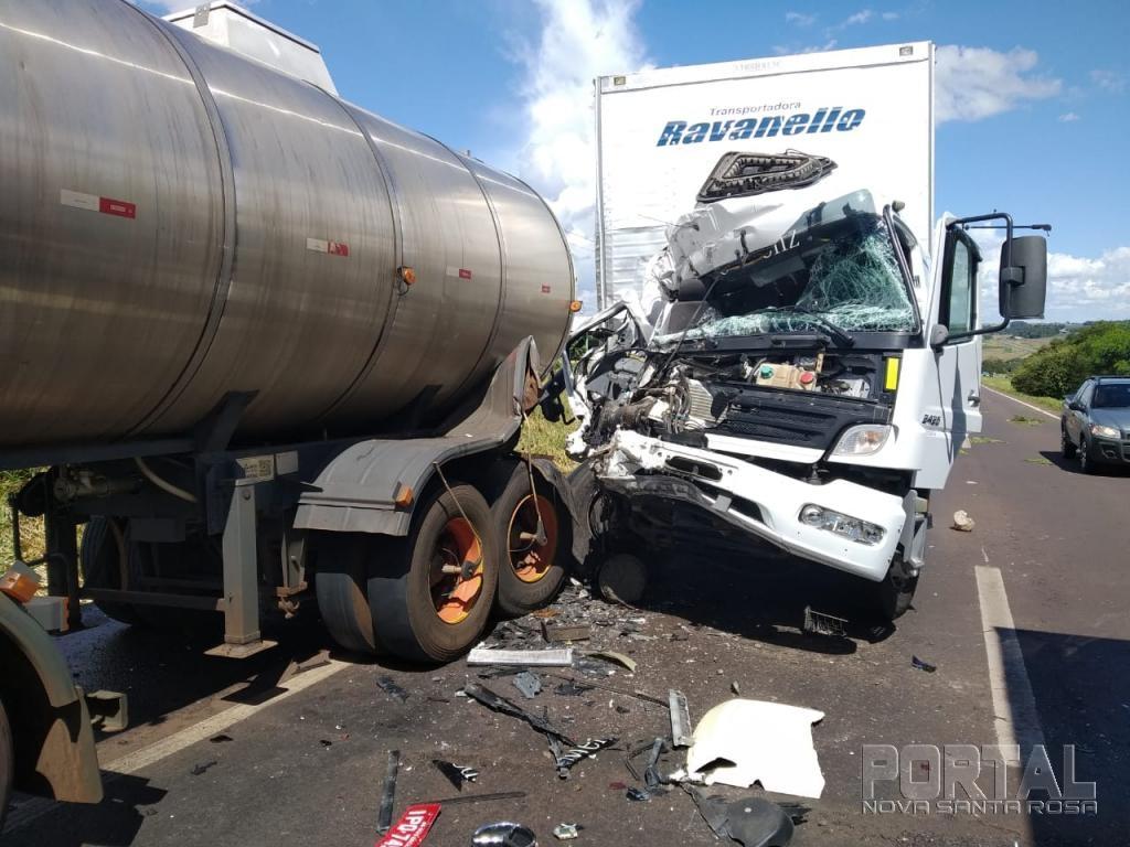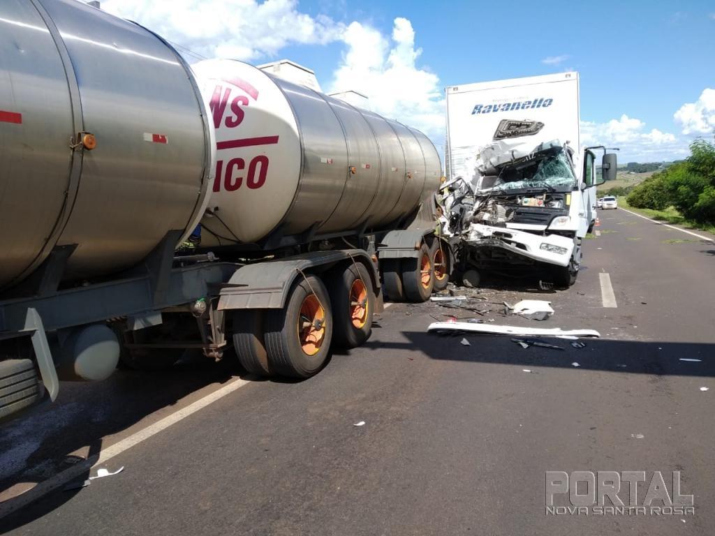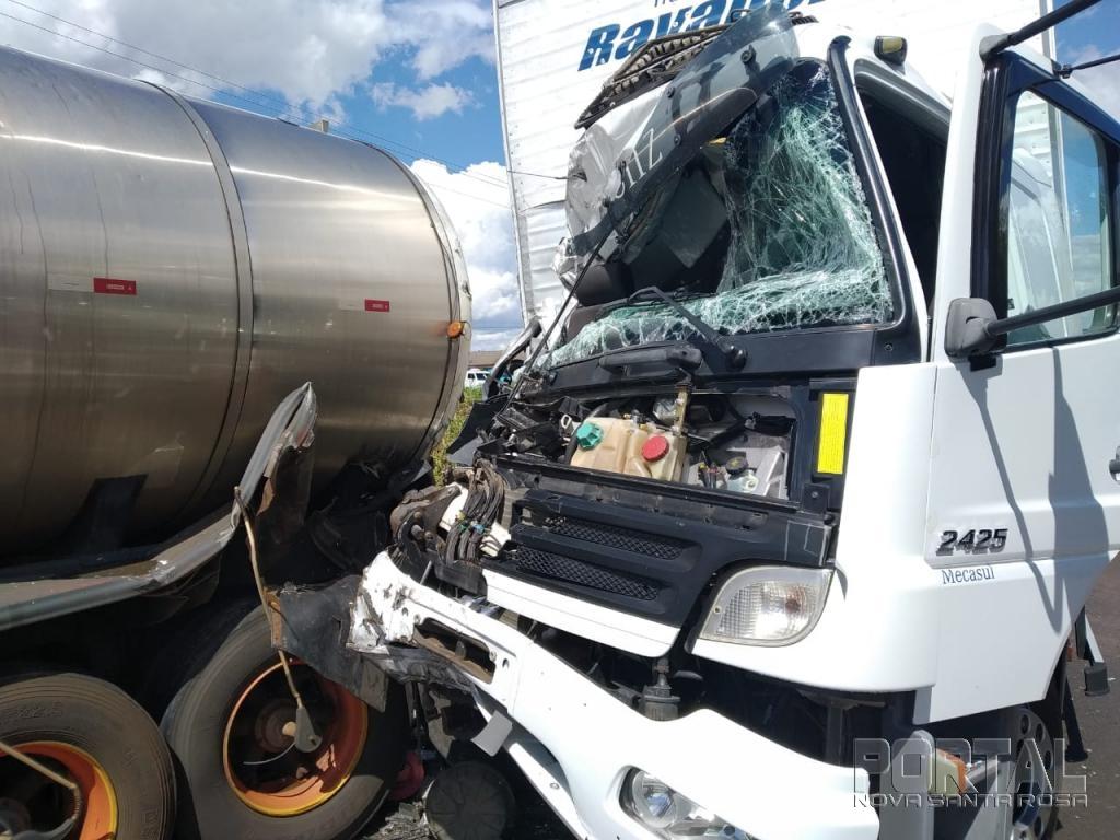 Na tarde deste domingo (24), um acidente envolvendo dois caminhões uma carreta Scania e um caminhão baú, na BR 467 sentido Cascavel a Toledo, próximo a interseção para Palotina, resultou em uma colisão traseira.