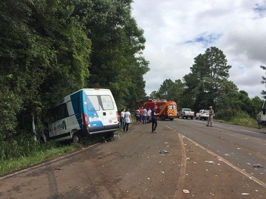 A colisão foi entre um VW/Fox, com placas de Rio das Antas (SC) e uma Van da Secretaria de Saúde de Salto do Lontra que estava retornando com os pacientes que haviam feito hemodiálise em Francisco Beltrão.