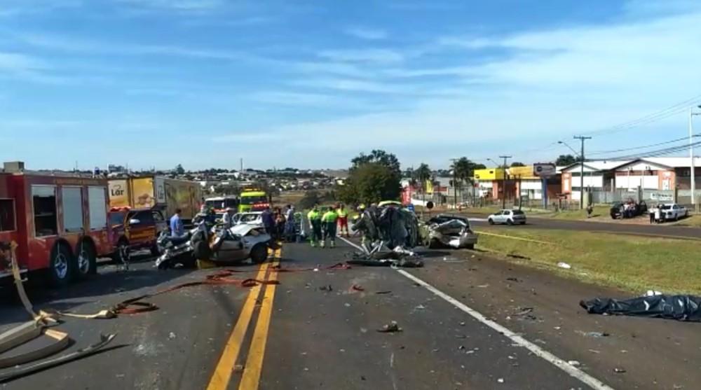 Uma jovem de 24 de anos, que estava em um carro com placas de Cascavel, também morreu no local.