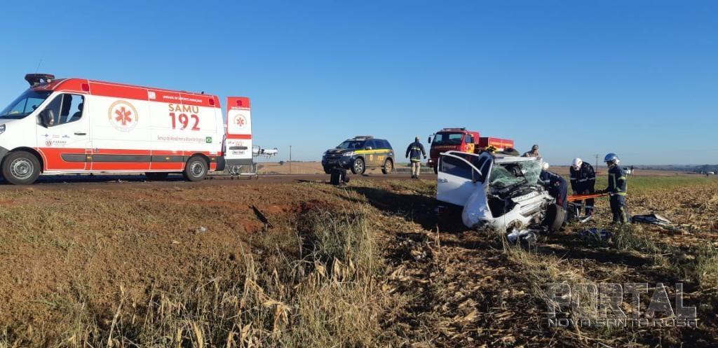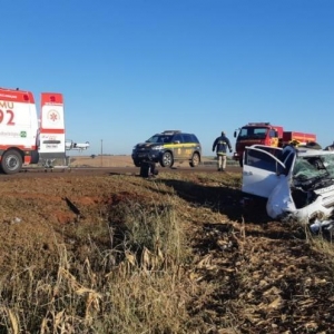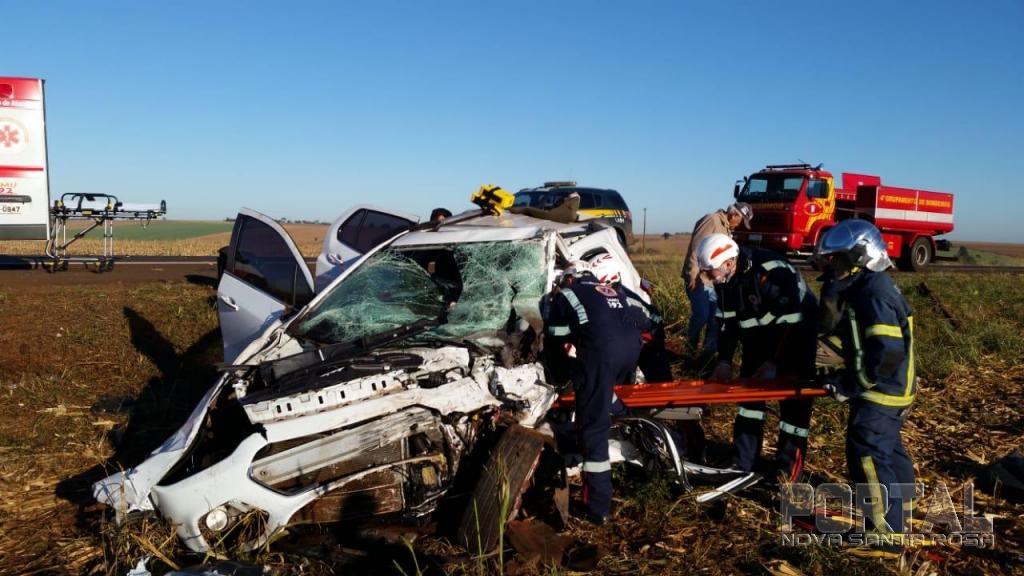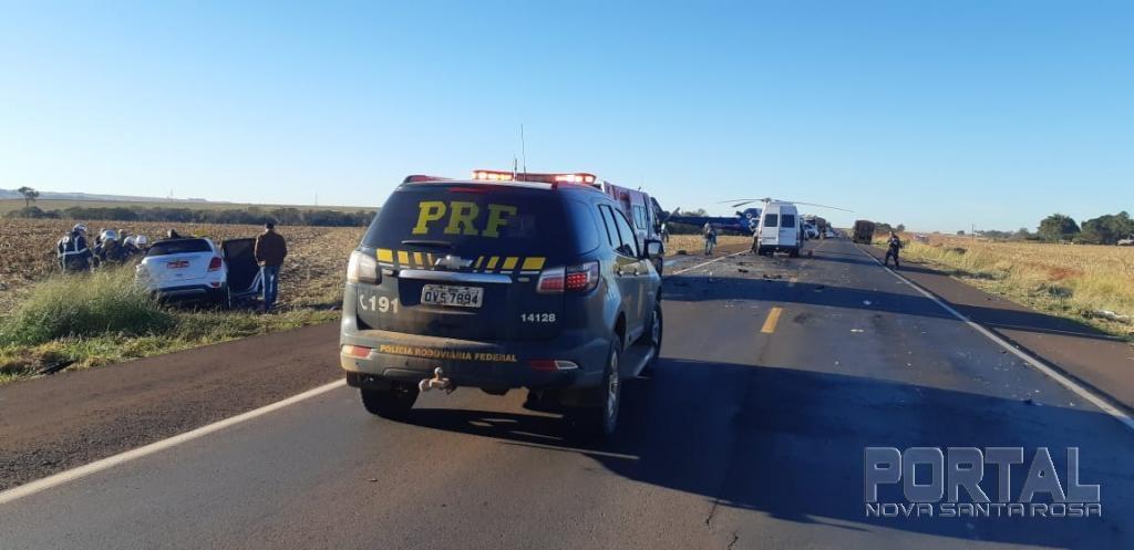 A PRF está no local, assim como equipes do SAMU de Guaíra.