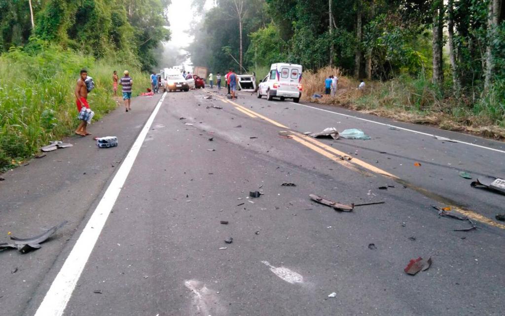 Um homem morreu e outras três pessoas ficaram gravemente feridas em um acidente com ao menos três veículos na manhã desta quarta-feira (21), na BR-101, a oito quilômetros de Ubaitaba, no sul da Bahia.