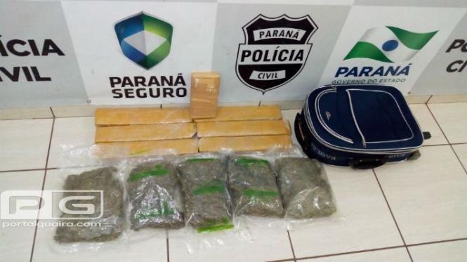 Na mala havia 9 quilos e 234 gramas de Maconha, além de 1 quilo e 15 gramas de Skank.