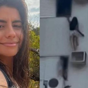 A imagem angustiante mostra Juliane apoiada sobre o ar-condicionado no 13º andar do Edifício João Batista Cunha, em Cascavel.