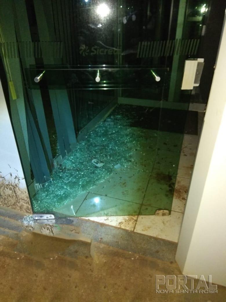 Quando os policiais chegaram ao local foi constatado que a porta principal da agência de vidro temperado havia sido quebrada e os elementos não estavam mais no local.