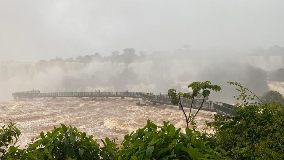 Após 11 dias, a passarela das Cataratas do Iguaçu, no Parque Nacional do Iguaçu, foi reaberta nesta quinta-feira (9), às 9 horas. As Cataratas do Iguaçu estão com vazão d’água de 7 milhões de litros d’água por segundo. O volume está 4 vezes acima da média, que é de 1,5 milhão.