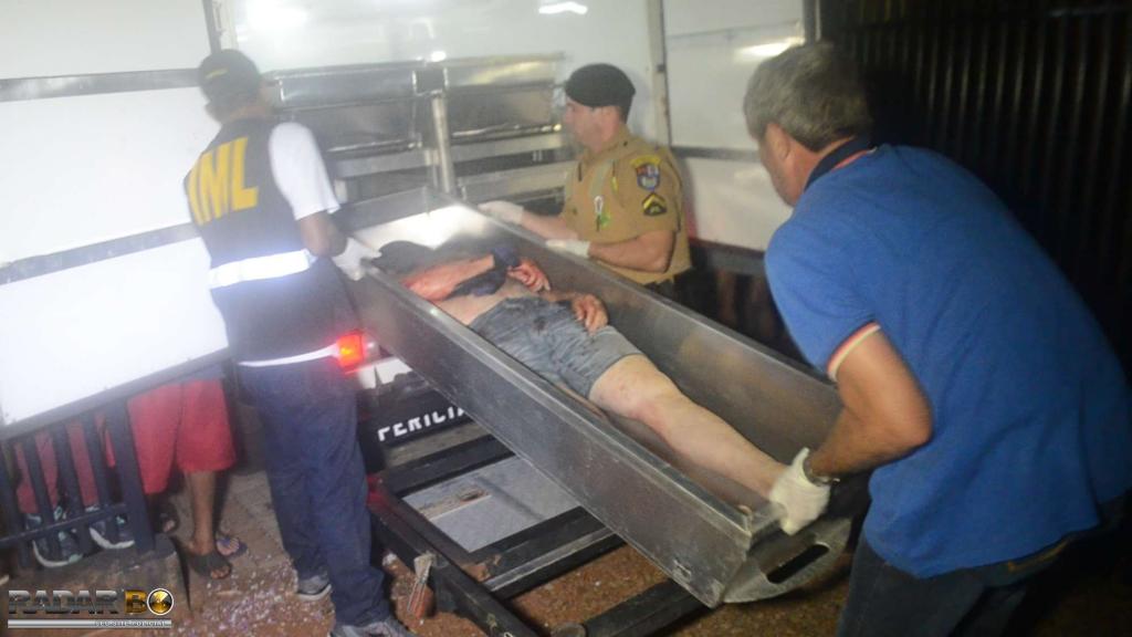 Por volta das 21h00 de ontem, a equipe da PM foi acionada para deslocar até a rua Alcides Paraíba dos Santos, 268, Vila Pioneira, onde segundo informações repassadas por um solicitante anônimo um indivíduo havia sido vítima de disparos de arma de fogo. No local, a equipe policial se deparou com Antônio Santana, deitado no sofá, com dois disparos de arma de fogo no pescoço lado direito e uma facada no braço direito e outra nas costas, com uma faca torta caída ao lado. Foi acionado a equipe do SIATE, que constatou o óbito da vítima. Também estava no local, uma mulher que havia ido até a residência da vítima e testemunhou o crime pois seu ex-marido de qual está separada a cerca de três meses, foi até o local para busca- la e leva- la a força embora. Segundo a testemunha, a vítima pediu que ela se trancasse no quarto. Nisso, o acusado tentou arrombar a porta, e entrou em vias de fato com a vítima, e então a declarante escutou cinco disparos e quando saiu do quarto, pulando a janela se abrigou na casa de um vizinho. A testemunha informou que a arma de fogo pertencia a vítima, e que possivelmente o mesmo desferiu três disparos contra seu ex marido, Marcos Roberto Pereira Mendes, no intuito de se defender das facadas, na sequência, o acusado tomou a arma da vítima e conseguiu alvejá-lo com dois disparos no pescoço. Logo após o crime o autor se evadiu do local correndo sentido bairro Boa esperança. Enquanto as demais equipes realizavam o atendimento do local da ocorrência do homicídio, foi repassado para deslocar até a rua Santa Luzia, 211, pois ali havia outro homem com ferimentos de arma de fogo. Ao chegar no local a equipe policial encontrou um indivíduo, posteriormente identificado como sendo o autor do homicídio, com duas perfurações aparentes na região do abdômen. Populares já haviam acionada a equipe médica para atendimento, uma vez que o ferido estava consciente. Populares informaram que o ferido chegou ao local ensanguentado com uma arma em punho e pedindo por ajuda, então os moradores pediram que ele largasse a arma para que fosse ajudado. Nisso, as testemunhas que estavam no local esconderam a arma de fogo, e aguardaram a equipe policial chegar. Foi apreendido um revólver de marca Taurus e modelo calibre 38 Especial, com cinco munições deflagradas. Marcos foi encaminhado ao hospital Bom Jesus, onde foi realizada a guarda e escolta do mesmo. No endereço onde ocorreu o homicídio, uma equipe policial realizou o isolamento até a chegada do plantão de homicídios. O corpo de Antônio foi recolhido e encaminhado ao IML de Toledo.