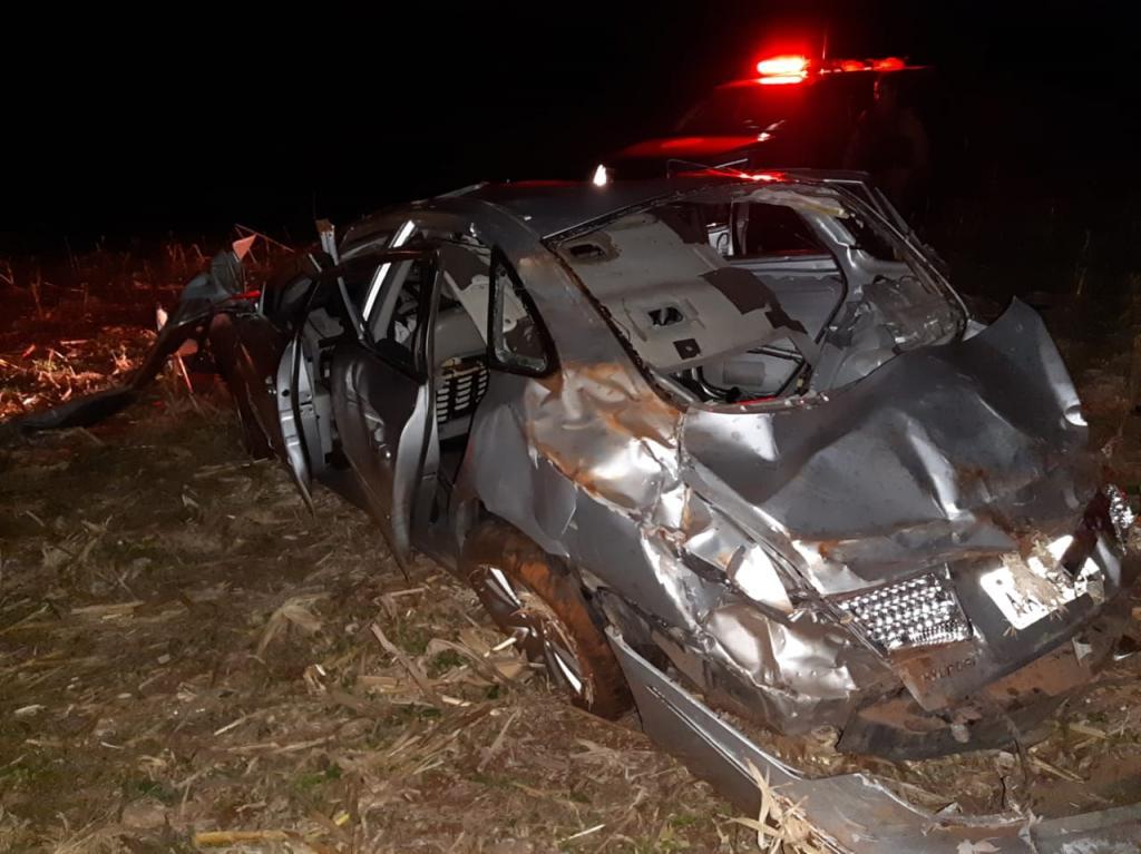 Durante a tentativa de fuga pela estrada que liga Mercedes ao Arroio Guaçu, o motorista perdeu o controle do veículo, saiu da estrada e capotou.