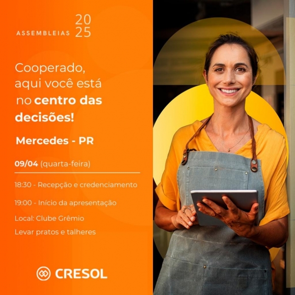 A última AGR da Cresol Integração acontece no dia 15/04, em Toledo.
