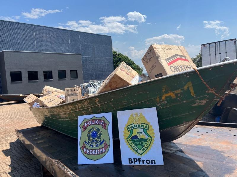 No local foi apreendida uma embarcação carregada com 1.250 pacotes de cigarros contrabandeados e 600 kg de inseticidas contrabandeados.
