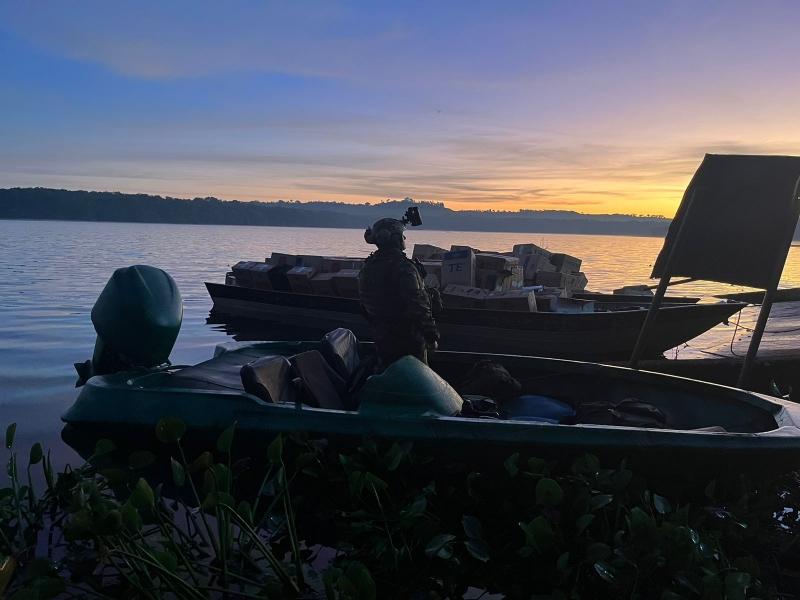 Os barcos e cigarros apreendidos foram encaminhados para a delegacia da Polícia Federal em Guaíra.