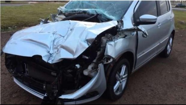 A batida foi embaixo da passarela que liga um bairro a outro. O veículo Fox seguia atrás do caminhão sentido a Curitiba, quando o motorista precisou frear e o carro bateu na traseira. Por sorte nenhum dos ocupantes dos veículos se feriram.