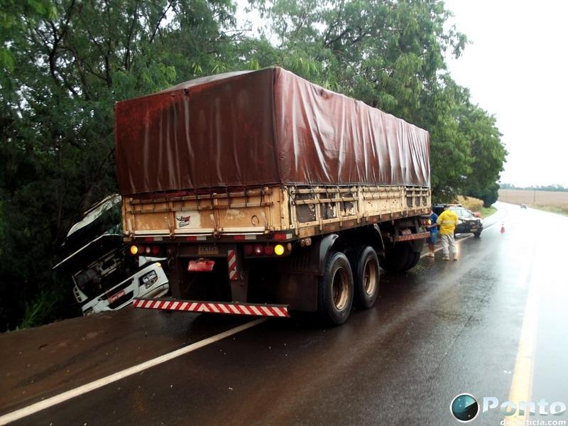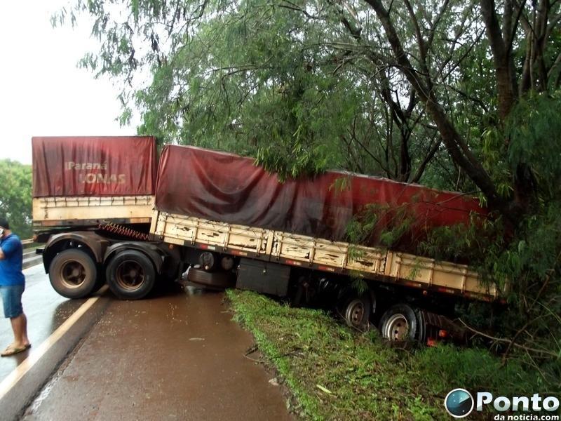 A carreta com placas de Ponta Porã/MS seguia pela rodovia sentido a Mercedes, quando em uma descida próximo a mineração, o condutor perdeu o controle da direção do caminhão. O bitrem atravessou a pista contraria e colidiu contra árvores.