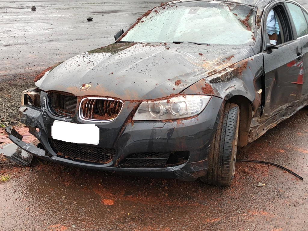 Uma BMW com placas de Curitiba capotou na BR 163, na manhã desta segunda-feira (21) entre os municípios de Marechal Rondon a Quatro Pontes, proximidades do Posto da Polícia Rodoviária Federal.