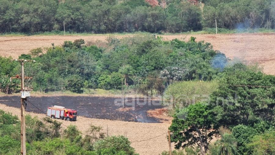 O fogo atingiu uma lavoura colhida e alastrou-se rapidamente. No local, havia uma área de mato ao lado. Populares e equipe do Corpo de Bombeiros trabalharam para conter as chamas e evitar que o fogo se alastrasse.