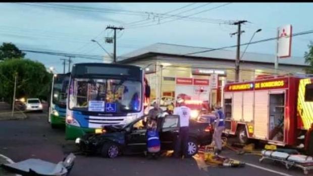 Testemunhas disseram que o condutor do automóvel avançou o sinal vermelho no cruzamento, no momento em que foi atingido pelo coletivo.