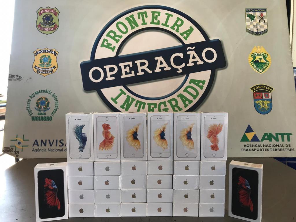Durante a vistoria, foi localizado um fundo falso e em seu interior havia 32 celulares, avaliados em aproximadamente R$ 35 mil.