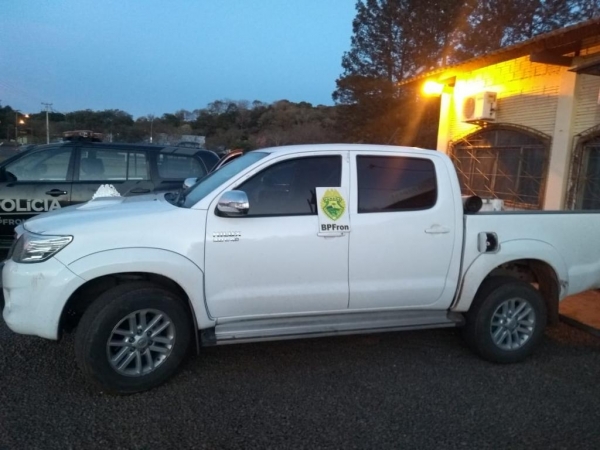No final da tarde de hoje, (16) Policiais Militares do BPFRON - Batalhão de Polícia de Fronteira realizavam patrulhamento no interior da cidade de Santo Antônio do Sudoeste quando avistaram uma caminhonete Toyota Hilux de cor branca com placas paraguaias.