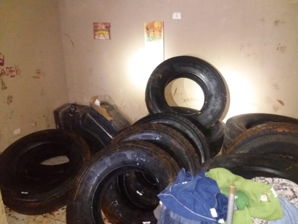 No depósito foram encontrados 16 pneus contrabandeados do Paraguai além de aproximadamente 100 kg de substância análoga a veneno agrícola. O contrabando apreendido foi encaminhado aos procedimentos legais cabíveis. Na noite de ontem também na cidade de Foz do Iguaçu - PR outra ocorrência do gênero foi registrada. Policiais Militares do BPFron realizavam patrulhamento quando adentraram em um porto clandestino. Indivíduos visualizaram a presença policial e se evadiram, não sendo localizados. No local, quatro pneus de caminhão contrabandeados do Paraguai foram apreendidos e encaminhados à Receita Federal de Foz do Iguaçu - PR para procedimentos.