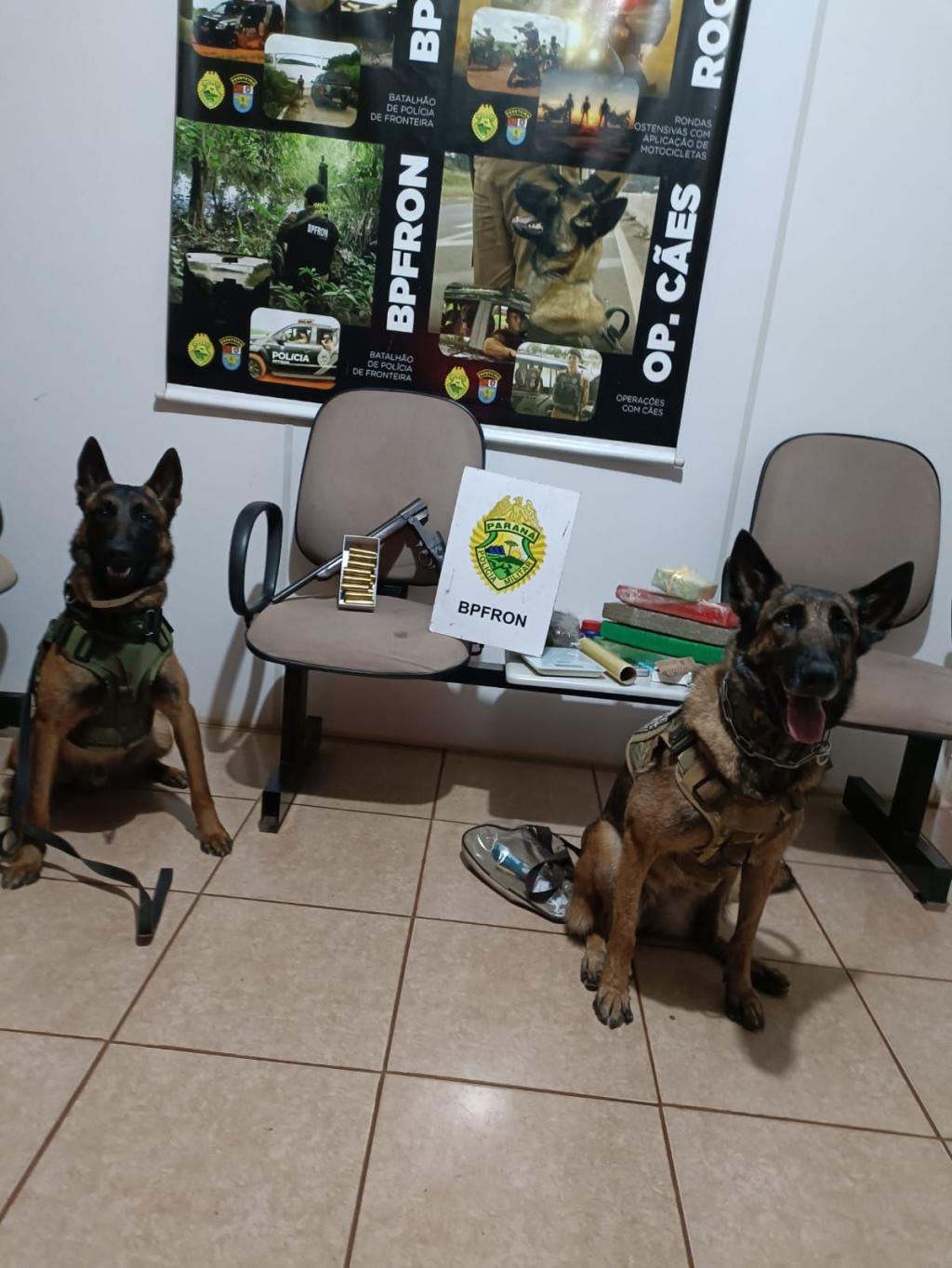 Na noite de terça-feira (25/10) policiais militares do BPFRON - Batalhão de Polícia de Fronteira patrulhavam a cidade de Marechal Cândido Rondon-PR quando abordaram uma residência. Os cães de faro do canil do BPFRON encontraram na residência duas mochilas, uma contendo drogas, uma arma de fogo e munições.