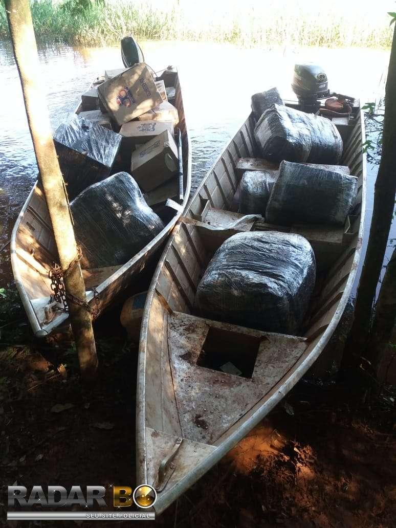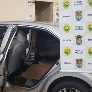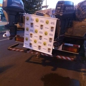 Nesta quinta-feira (05), policiais militares do BPFron - Batalhão de Polícia de Fronteira, através do Pelotão C.O.B.R.A. – Corpo de Operações de Busca e Repressão Aquática realizavam patrulhamento em portos clandestinos na cidade de Guaíra quando avistaram uma movimentação de embarcações e indivíduos as margens do lago de Itaipu. Ao se aproximarem, os indivíduos empreenderam fuga em meio a mata não sendo localizados. No local foram encontradas duas embarcações de 7 metros equipadas com motores 40 Hp e 25 Hp, ambas carregadas com mercadorias oriundas do Paraguai sendo elas 1200 pacotes de cigarros e 9 volumes de demais produtos contrabandeados. As embarcações e contrabando foram apreendidas e encaminhadas para os procedimentos legais cabíveis. Em outra ocorrência registrada na data de ontem, policiais militares do BPFron recuperaram um veículo com queixa de roubo. Os policiais militares realizavam patrulhamento na cidade de Guaíra quando avistara um veículo Corolla de cor prata estacionado em uma via. Ao realizar verificação policial foi constatado que o mesmo seria produto de um roubo a residência ocorrido no dia 14 de março em Palotina. O veículo no momento da apreensão encontrava-se apenas com o banco do motorista, prática comum de criminosos que preparam veículos neste formato para transportarem ilícitos. O veículo recuperado foi encaminhado para os procedimentos.