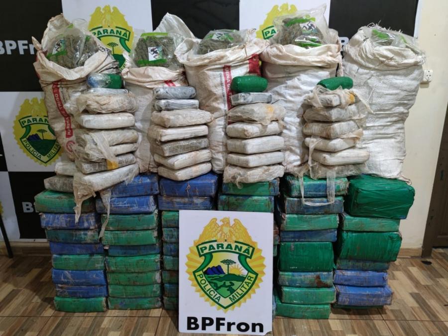 Nesta terça-feira (09), policiais militares do BPFron - Batalhão de Polícia de Fronteira patrulhavam a cidade de Guaíra, quando localizaram um veículo GM/Astra carregado com 520 kg de maconha, 43 kg de skank e 5,8 kg de haxixe.