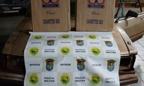Na tarde de hoje 02 Fev. 18, policiais militares do BPFron - Batalhão de Polícia de Fronteira realizavam patrulhamento as margens do lago de Itaipu na cidade de Guaíra - PR, quando avistaram uma embarcação e indivíduos a beira lago. Ao se aproximarem dos indivíduos estes empreenderam fuga em meio a mata não sendo localizados, já o condutor da embarcação evadiu-se com o barco em destino a margem Paraguaia. No local os policiais militares encontraram um veículo Ford Del Rey de cor dourada e duas caixas de cigarros* contrabandeados do Paraguai. O veículo e contrabando foram encaminhados para a Receita Federal de Guaíra - PR para os procedimentos legais cabíveis.