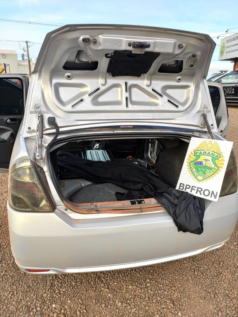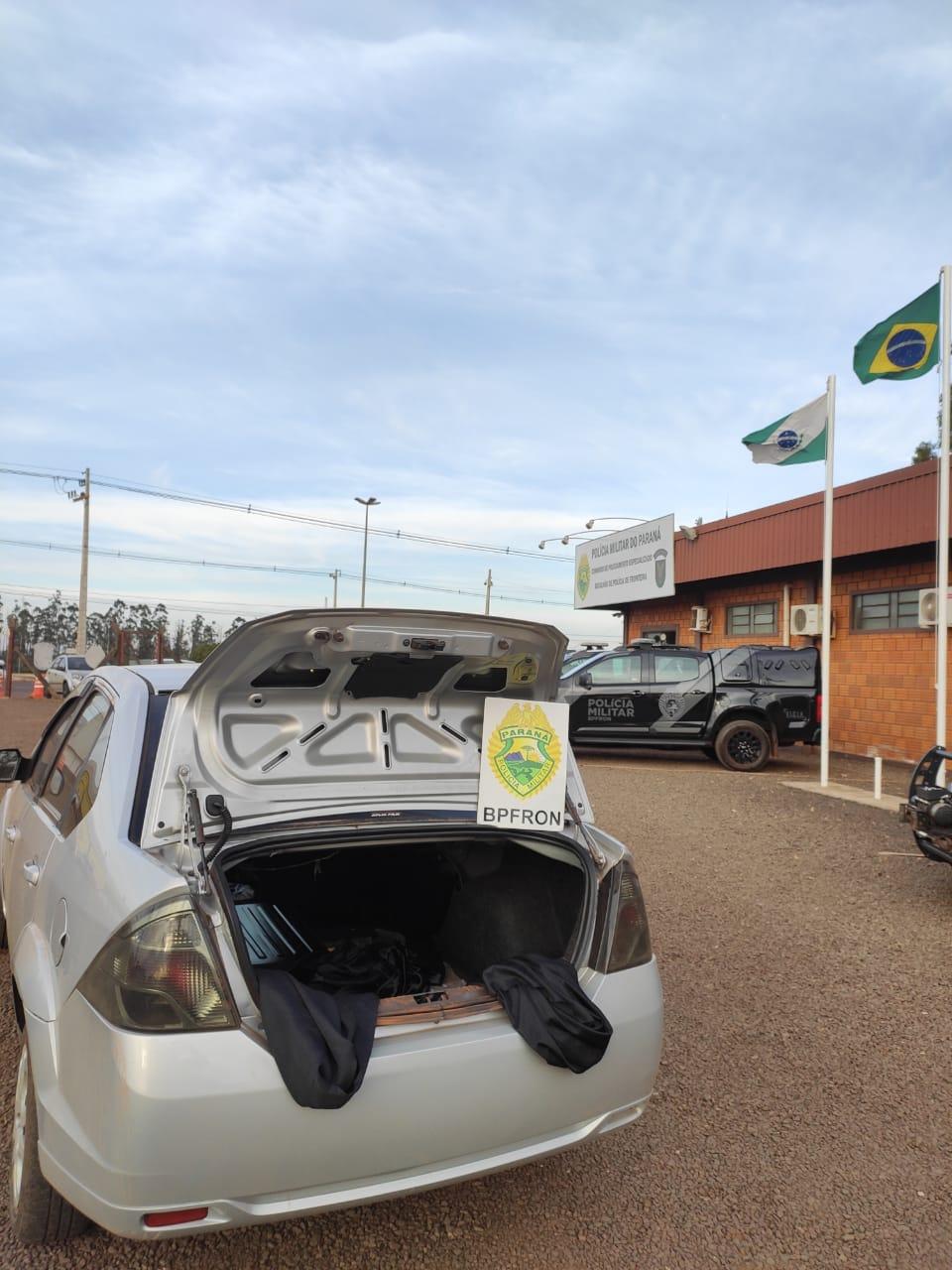 Na terça-feira, (05/07), policiais militares da Patrulha Rural do BPFRON - Batalhão de Polícia de Fronteira patrulhavam a cidade de Mercedes-PR quando avistaram um veículo trafegando em uma via. Aos avistar os policiais militares, o condutor fugiu com o veículo e o abandonou minutos mais tarde. O carro abandonado não possuía os bancos traseiros. O veículo estava com vários débitos em aberto em seu registro. O veículo foi apreendido e encaminhado para o DETRAN de Marechal Cândido Rondon-PR. O condutor não foi encontrado.