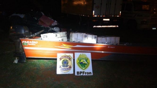 No local foi apreendida uma embarcação com motor 40HP Yamaha bem como aproximadamente 60 caixas de narguilé, trazidos irregularmente do Paraguai, um prejuízo estimado de R$ 75.000,00 para a organização criminosa.
